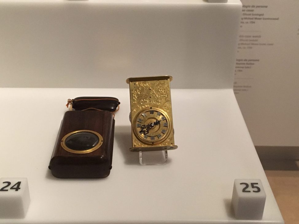 展示の最後には、時計の特集のコーナーがあって、また素晴らしいーってなってました。時代の流れでの時計の変化がおそらく展示されていて興味深いものでした。日本製のものも展示されており、文字盤の数字が漢数字なのが面白いですね!